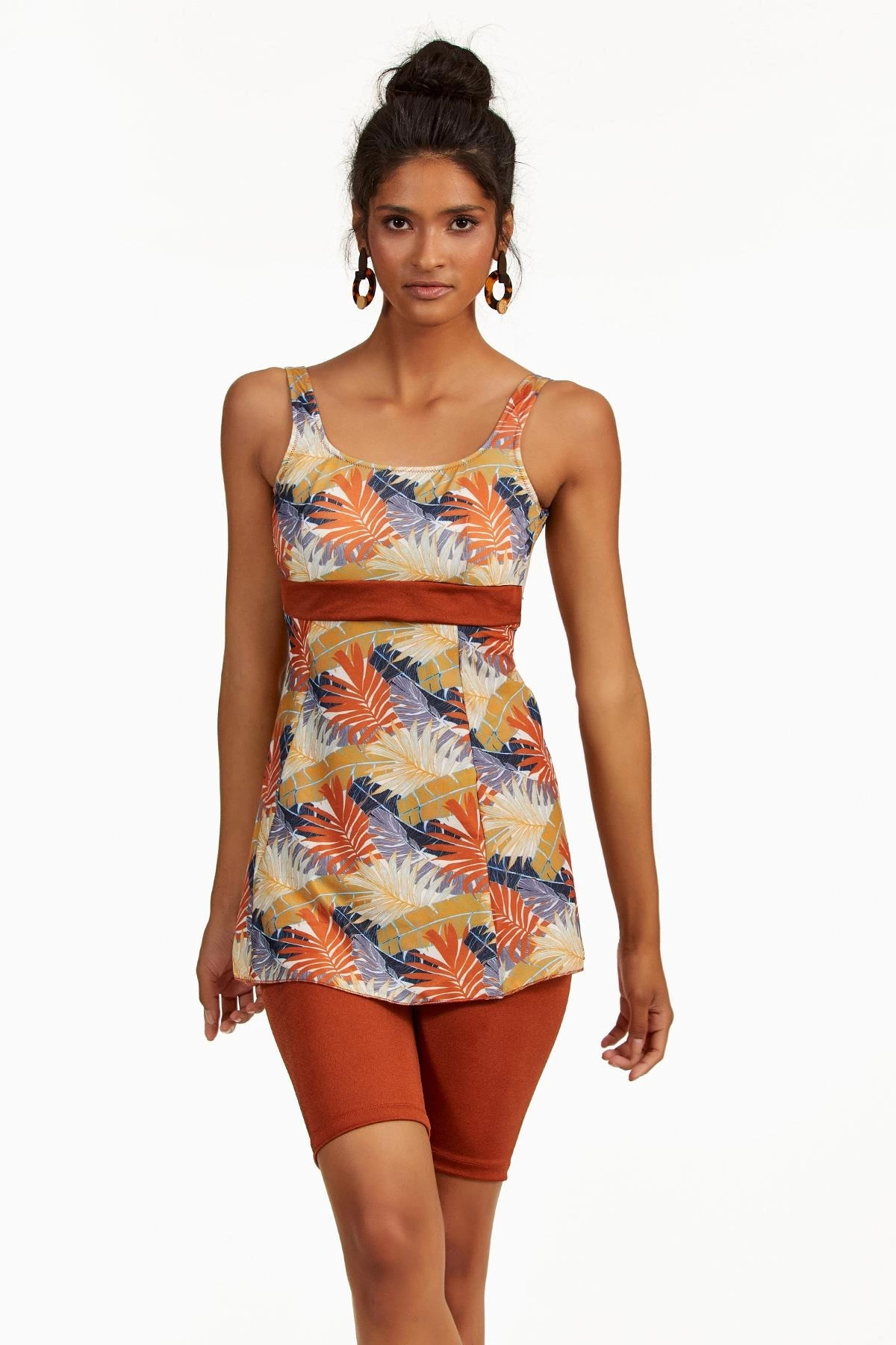 Argento 0551-9165 Yaprak Desenli Yarı Kapalı Taytlı Tankini