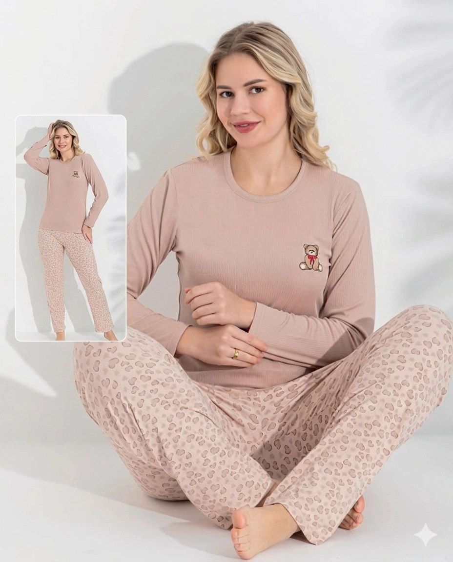Boyraz 0214 Kadın Raporlu Uzun Kol Pijama Takımı