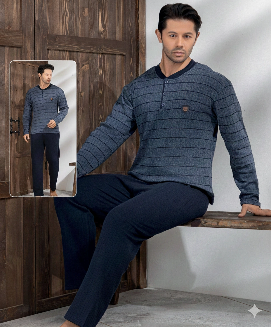 Boyraz 04032 Erkek Raporlu Uzun Kol Pijama Takımı