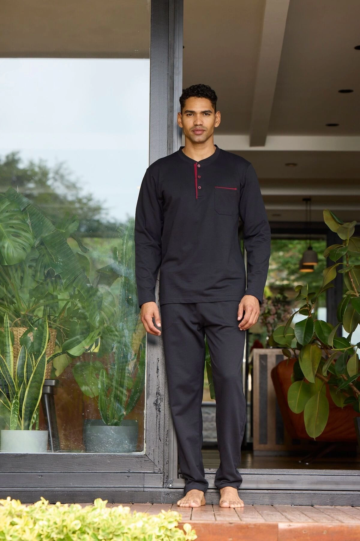 Kocabey 9133 Erkek Midi Yaka Uzun Kollu Pijama Takımı